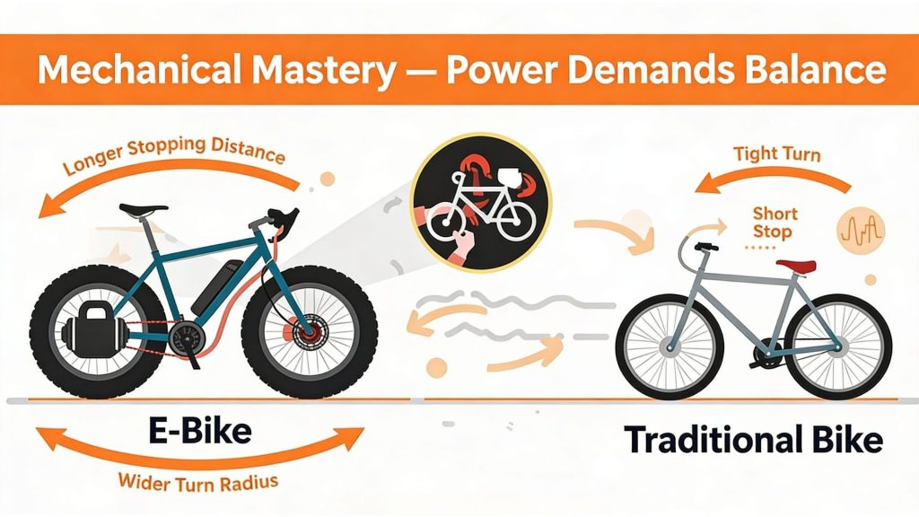 This extra mass is your ally on hills but your adversary in emergencies. It demands more distance to stop, more space to turn, more respect to control.